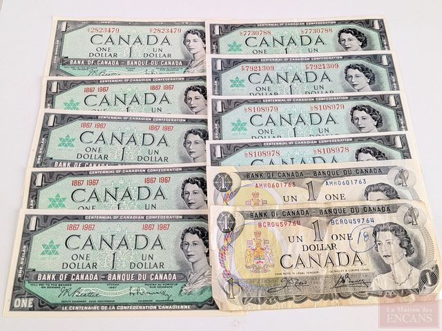 Lot # 119 - Lot de billets canadiens d'un dollar 1967 et 1973