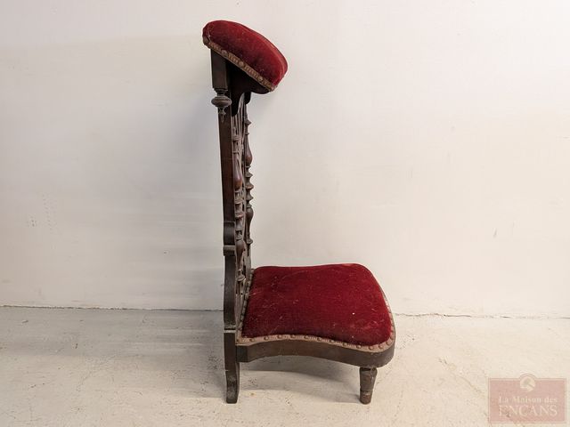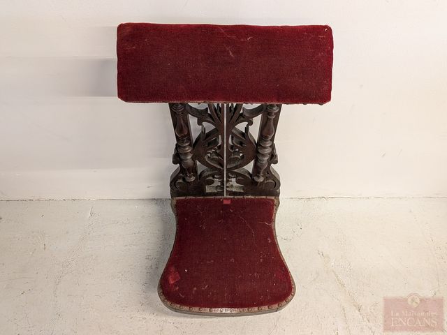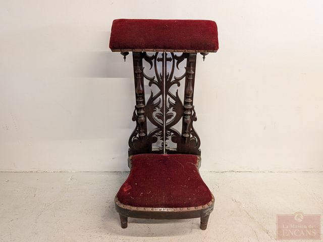 Lot # 185 - Ancien prie-Dieu en bois recouvert de velours, mesurant 35 pouces de hauteur