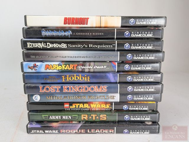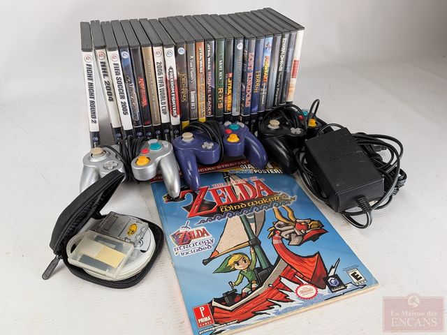 Lot # 168 - Lot Nintendo Gamecube comprenant divers accessoires, manettes et jeux, dont Zelda Windwaker, Zelda édition de collection avec CD supplémentaire, Mario Kart Double Dash, Eternal Darkness, The Hobbit, Lost Kingdoms, Summoner, Need for Speed Unerground et autres