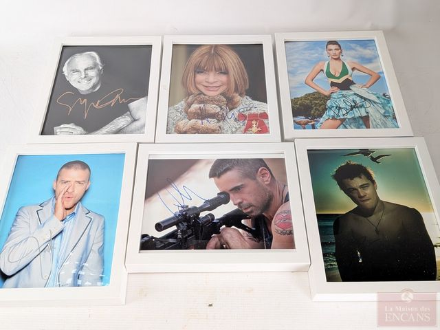 Lot # 183 - Lot de photographies autographiées, comprenant Colin Farell, Leonardo Dicaprio, Justin Timberlake, Anna Wintour, Bella Hadid et Giorgio Armani