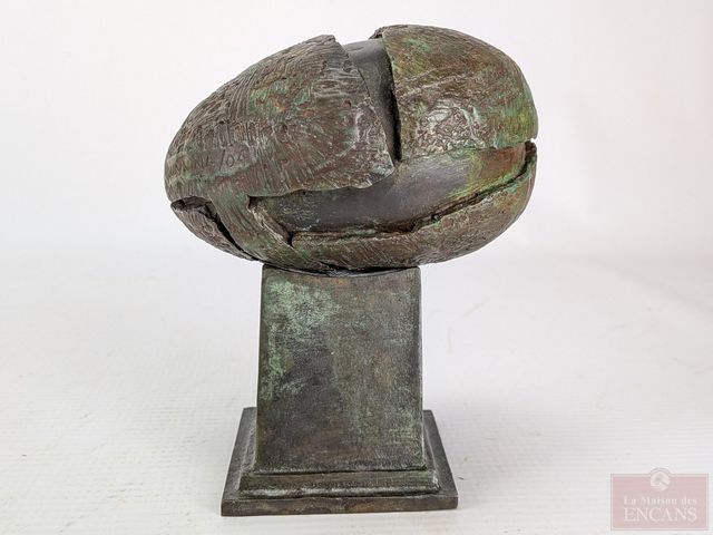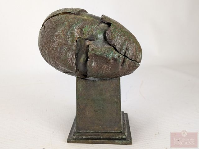 Lot # 132 - Dove DUNNING- Sculpture en bronze avec son socle en bronze, signée, la tête mesurant 4 pouces de hauteur et le socle mesurant 2.5 pouces de hauteur
