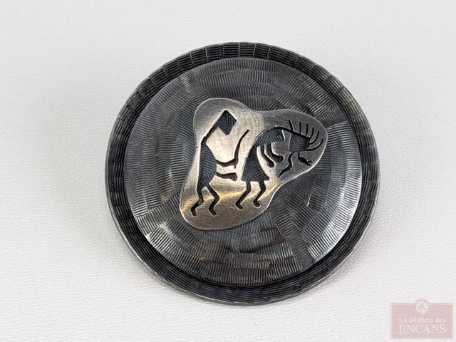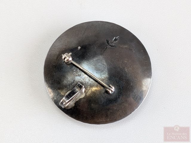 Lot # 202 - Pendentif-broche signée en argent, mesurant 1.5 pouces de diamètre