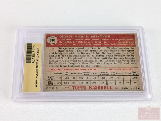 Lot # 106 - Carte George Metkovich Topps 1952 #310, gradée ACA 5