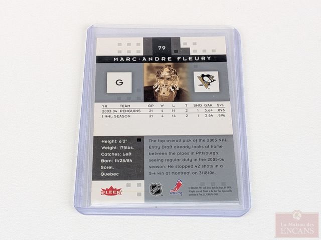 Carte de hockey Fleer Marc-André Fleury, autographiée