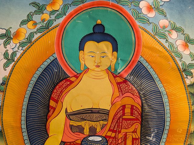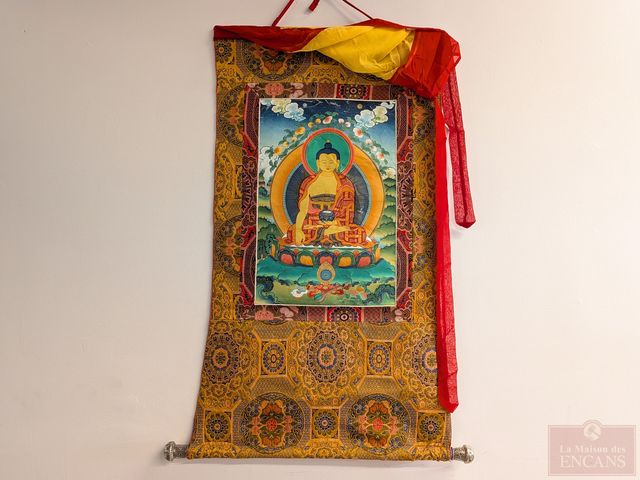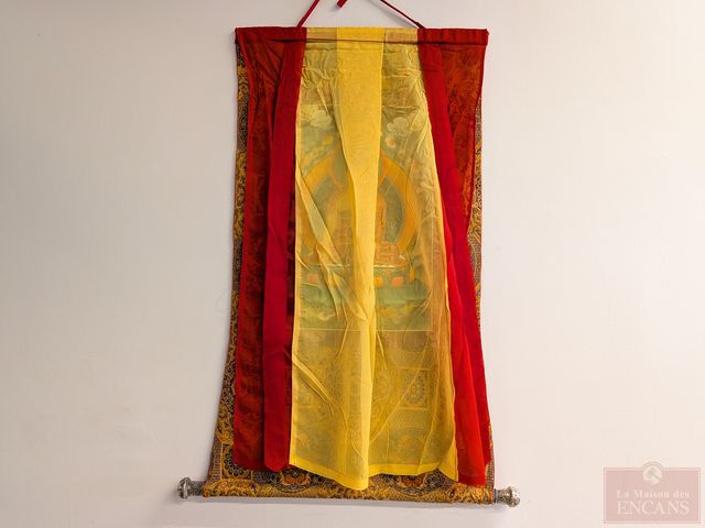 Lot # 169 - Thangka peint sur soie, représentant bouddha et mesurant 41 pouces de hauteur