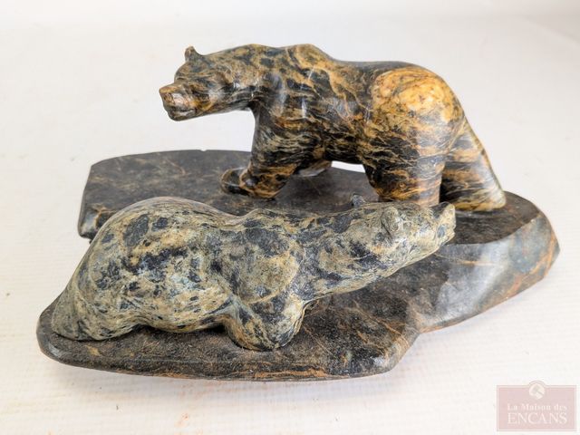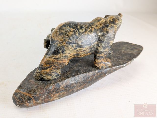 Lot # 154 - Sculpture inuite sur pierre à savon, signée et mesurant 10 pouces de largeur