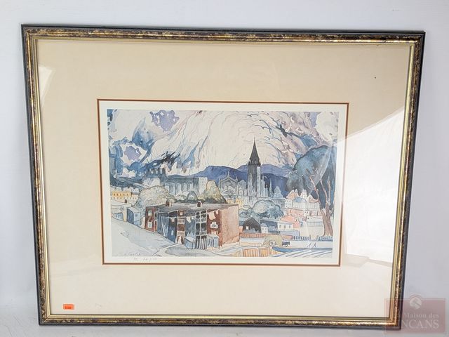 Lot # 125 - Impression sur papier hors-commerce d'une œuvre de Marc-Aurèle Fortin, numérotée à la mine et mesurant 11x16 pouces