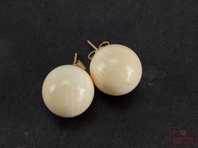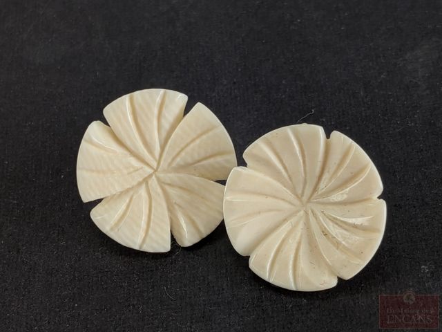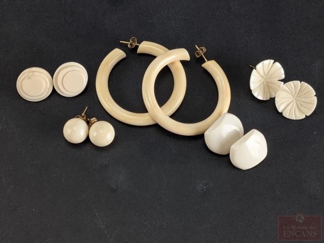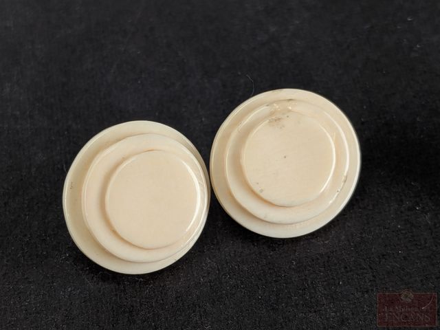 Lot # 227 - Lot paires de boucles d'oreilles sculptées sur ivoire avec or, circa 1940, la plus grande mesurant 1.5 pouces de diamètre