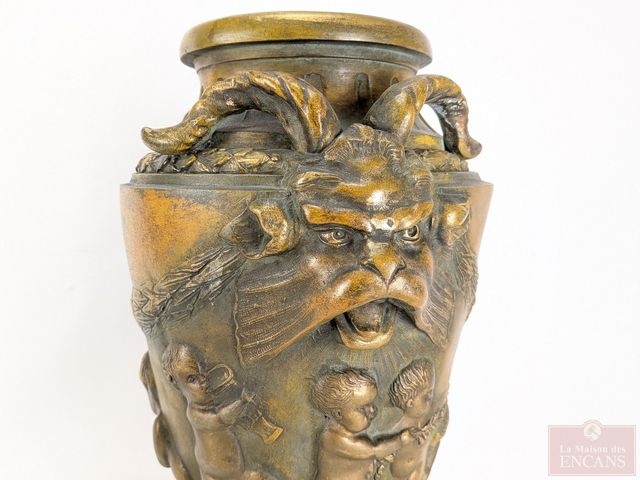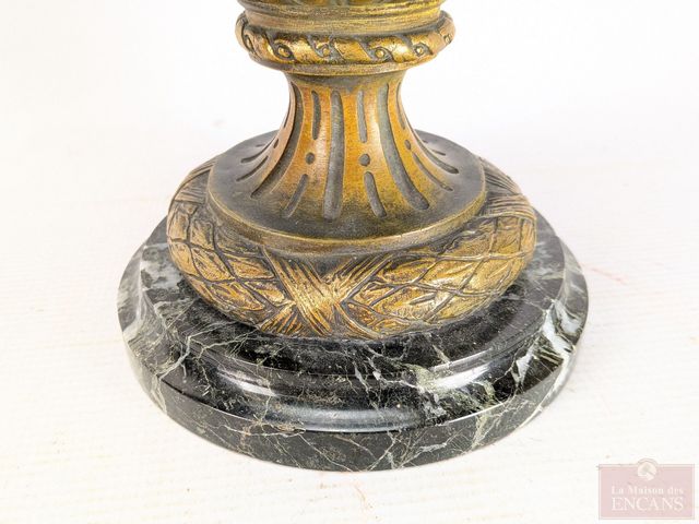 Lot # 141 - Deux bruleurs d'encens en métal sur socles de pierre avec motifs têtes de boucs, signés Treta, faits à paris et mesurant 16 pouces de hauteur