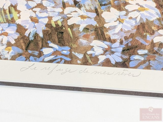 Lot # 23 - André BERTOUNESQUE- (Le refuge de mes rêves), lithographie signée et numérotée à la mine, mesurant 16.5x22 pouces, provenant d'une collection privée de Baie St-Paul .