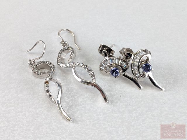 Lot # 99 - Deux paires de boucles d'oreilles en argent sterling, la plus grande mesurant 1.5 pouces de hauteur