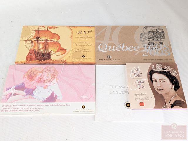 Lot de pièces canadiennes comprenant cinquante sous du jubilée, quatre-centième anniversaire de la Nouvelle-France, guerre de 1812, ainsi que le quatre-centième anniversaire de la ville de Québec