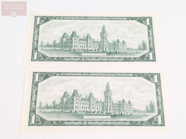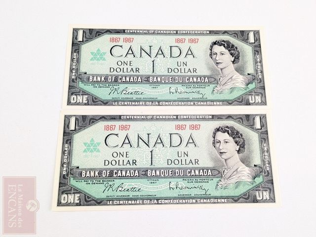 Lot # 76 - Deux billets canadiens d'un dollar 1967