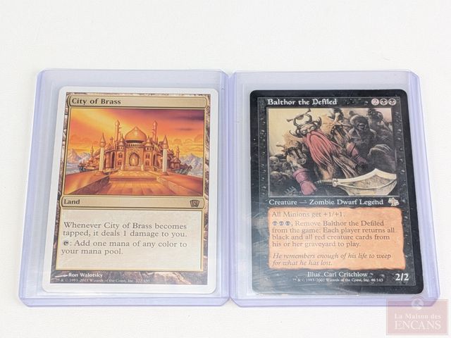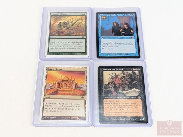 Lot de rares cartes Magic the Gathering, comprenant Balthor the Defiled, Wheel and Dead, Natural Affinity et City of Brass