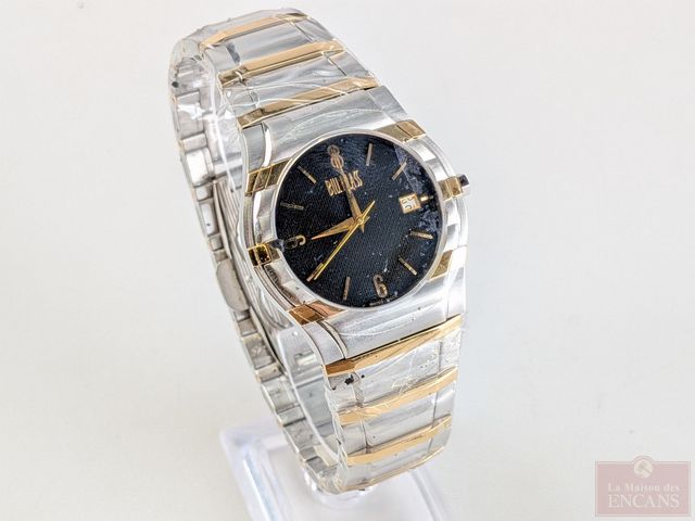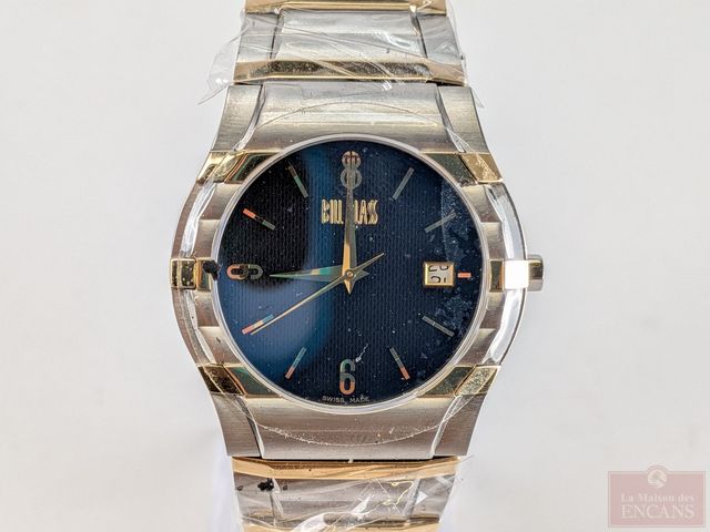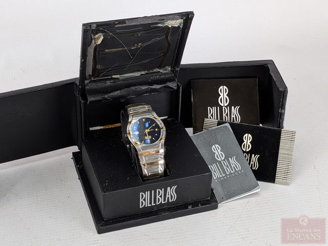 Lot # 31 - Montre Bill Blass mouvement suisse au quartz avec date, mesurant 37.9 millimètres avec sa couronne signée, dans sa boite avec document (fonctionnelle mais besoin d'une nouvelle batterie)