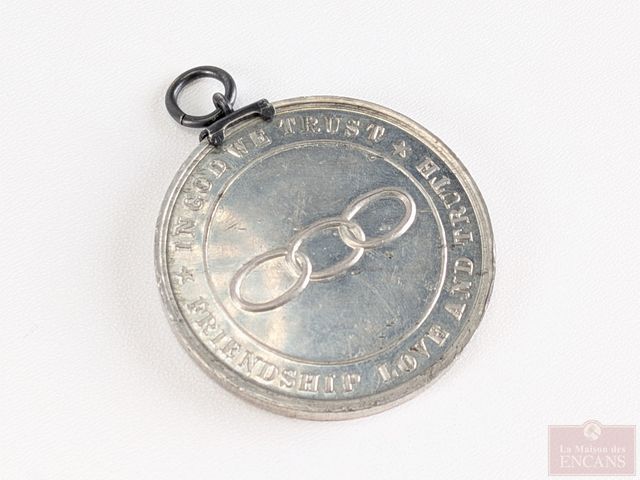 Lot # 77 - Médaille américaine montée en pendentif avec inscription 'In God we Trust, Friendship, Love and Truth', mesurant 2 pouces de hauteur