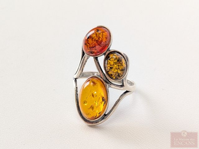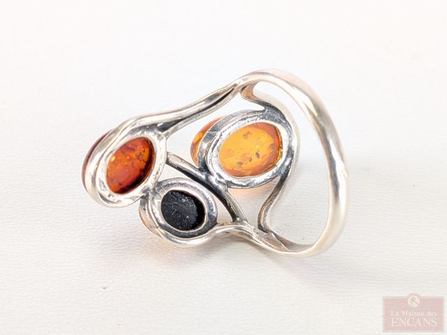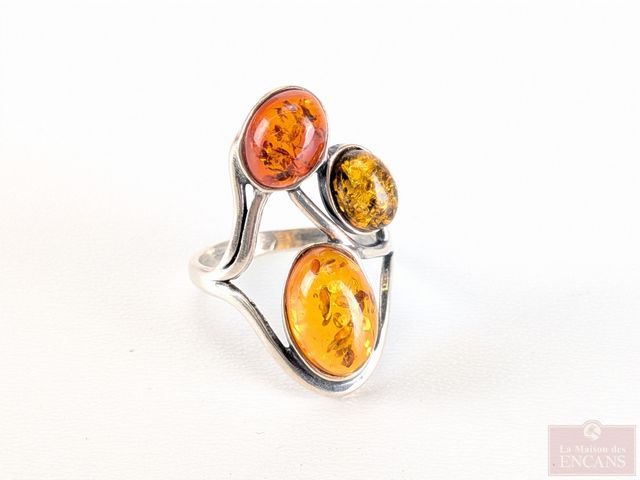 Lot # 103 - Bague en argent sterling sertie d'ambre, taille 7.5