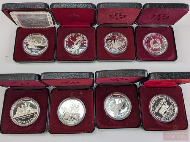 Ensemble de coffrets numismatiques canadiens d'un dollar en argent, comprenant 1984 à 1991