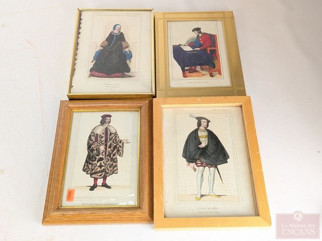 Lot # 181 - Quatre gravures aquarellées à la main, circa 19eme siècle, la plus grande mesurant 8x5.5 pouces