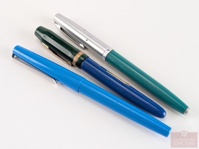 Lot de trois plumes-fontaines, dont une avec pointe en or 14k
