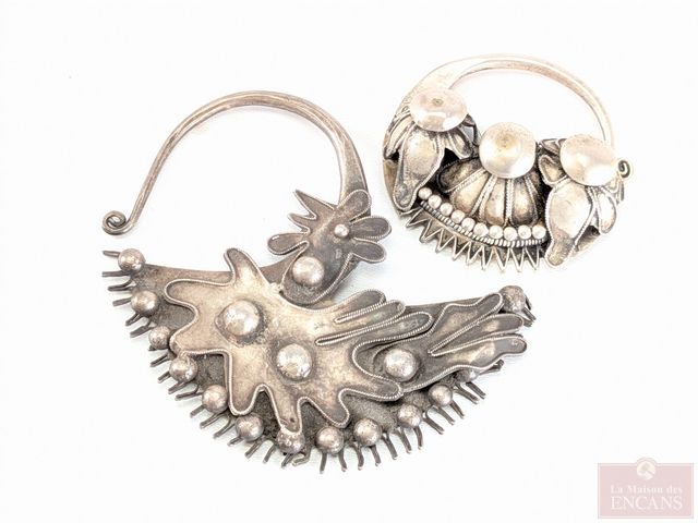 Deux porte-foulards en argent, travail artisanal, le plus grand mesurant 3.5 pouces