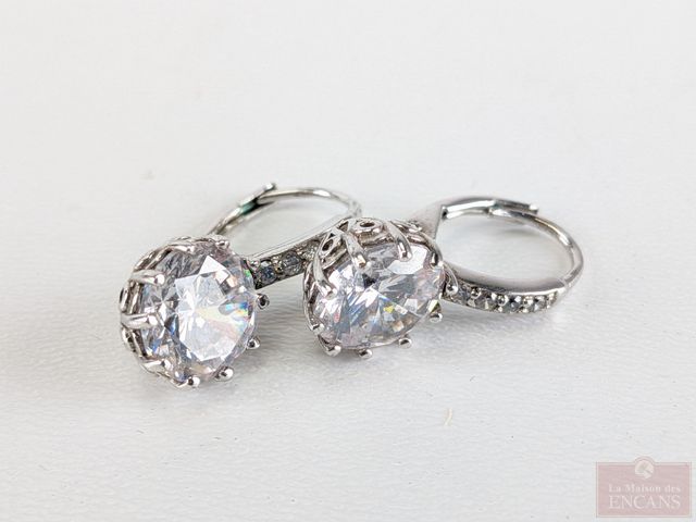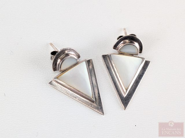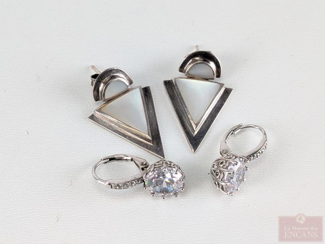 Lot # 82 - Deux paires de boucles d'oreilles en argent sterling, la plus grande mesurant plus d'un pouce