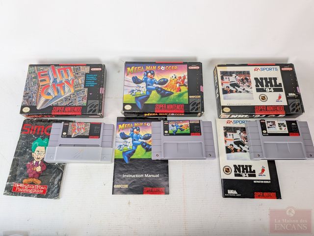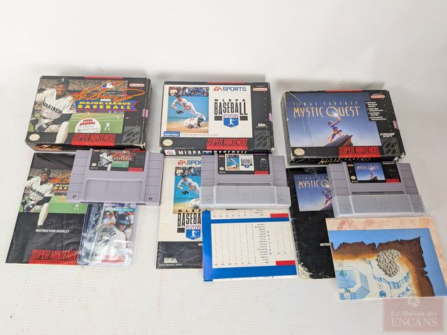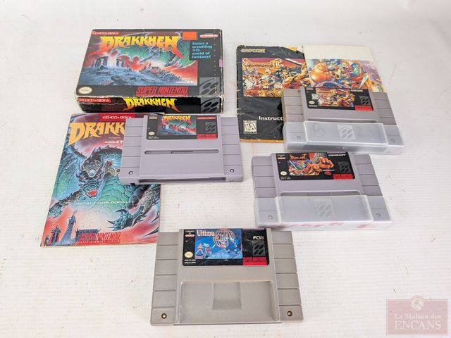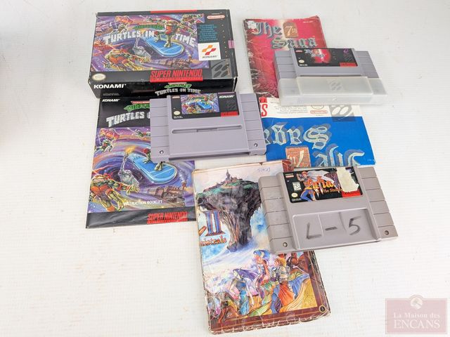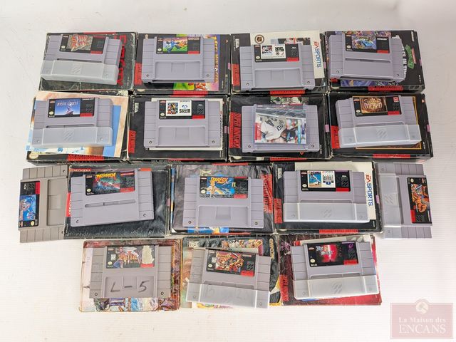 Lot # 177 - Gros lot de jeux-vidéos Super Nintendo, comprenant Starfox, Lufia 2, Breath of Fire 1 et 2, The Seventh Saga, Young Merlin, Megaman Soccer, Sin City, Final Fantasy Mystic Quest, Drakkhen, Runes of Virtue 2, Turtles 4 et autres, certains avec leurs boites et manuels, ainsi que carte