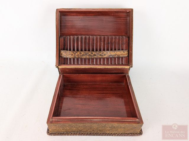 Lot # 54 - Boite à cigares et à cigarillos en bois, mesurant 8.5 pouces de largeur