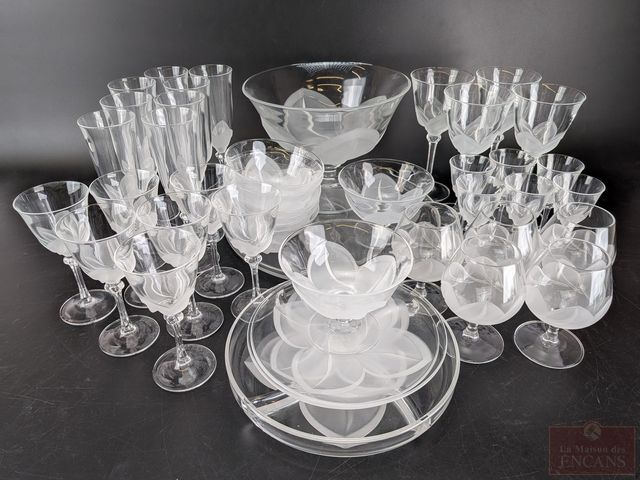 Lot # 162 - Lot de verreries comprenant verres en cristal français J.G Durand modèle Tulipe, dont flutes à champagne