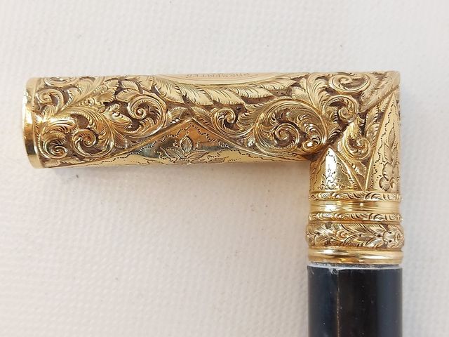 Lot # 87 - Ancienne canne d'apparat avec pommeau gold filled finement ciselé - 1884 SOLD