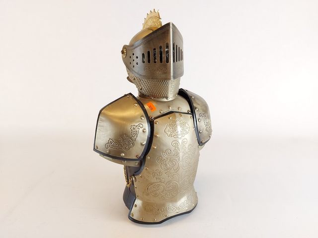 Lot # 131 - Chevalier en armure avec compartiment secret pour contenir une bouteille - vintage - années 70 - 15 pouces de hauteur VENDU