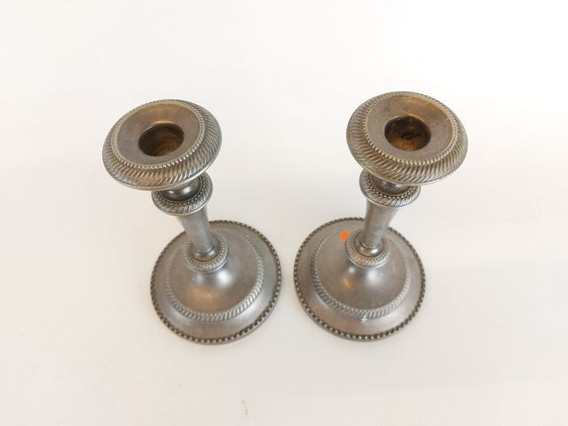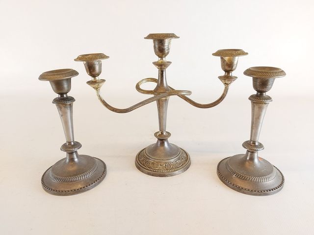 Lot # 23 - Trois chandeliers - le plus grand mesure 10 pouces - la paire est en étain VENDU