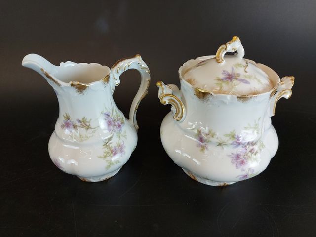 Lot # 212 - Lot de porcelaines de Limoges dont théière - pot à lait - plat de présentation - sucrier - ramequin - tasses et sous-tasses SOLD