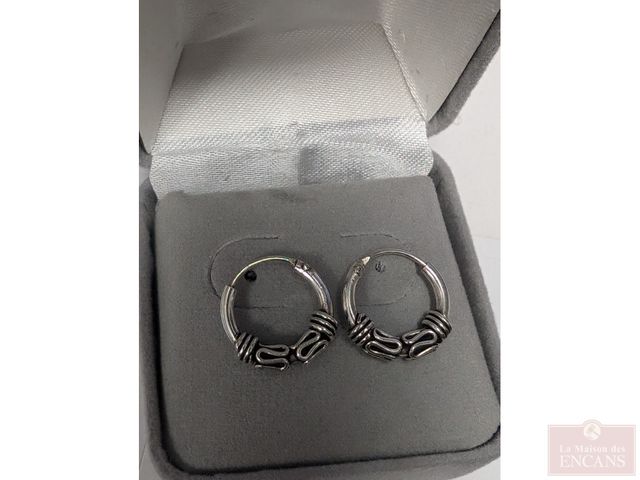 Lot # 21 - Paire de boucles d’oreilles en argent