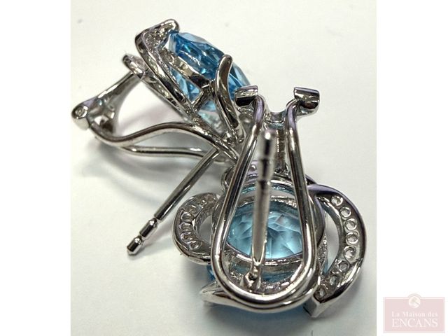 Lot # 113 - Paire de boucles d’oreilles en argent avec topaz de 3.5 carats