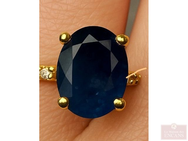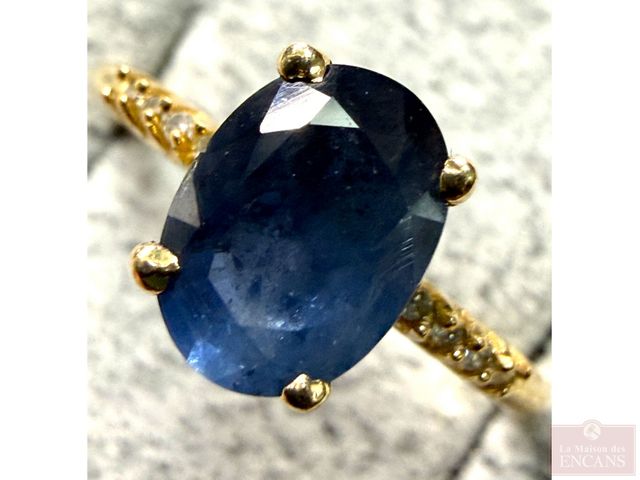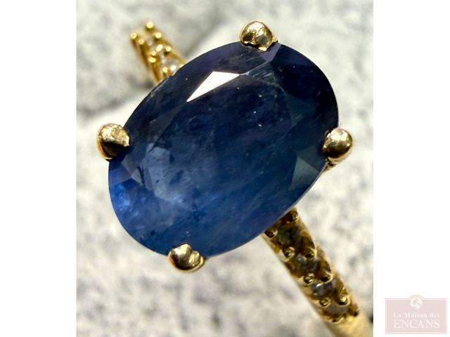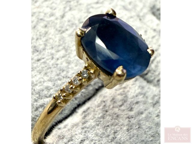 Lot # 183 - Bague en or 10k avec saphir de 1.4 carat et diamant de 0.05 carat