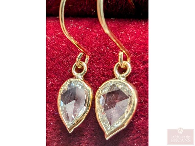 Lot # 48 - Paire de boucles d’oreilles en or 10k avec diamant de 0.7 carat