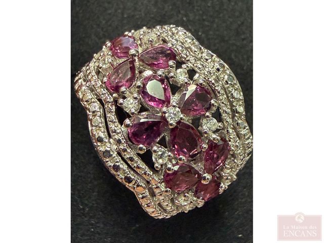 Lot # 126 - Bague en argent avec grenat de 2 carats