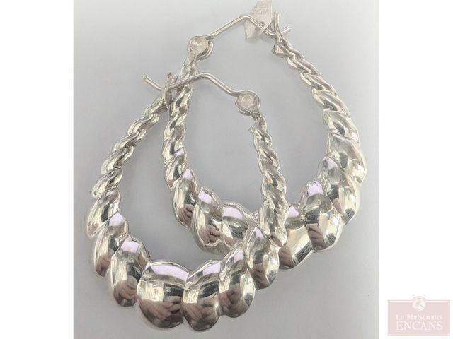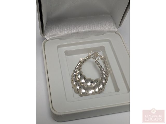 Lot # 61 - Paire de boucles d’oreilles en argent
