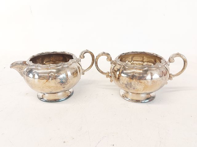 Lot # 158 - Ensemble de service comprenant cabaret 24 pouces théière cafetière sucrier et crémier VENDU