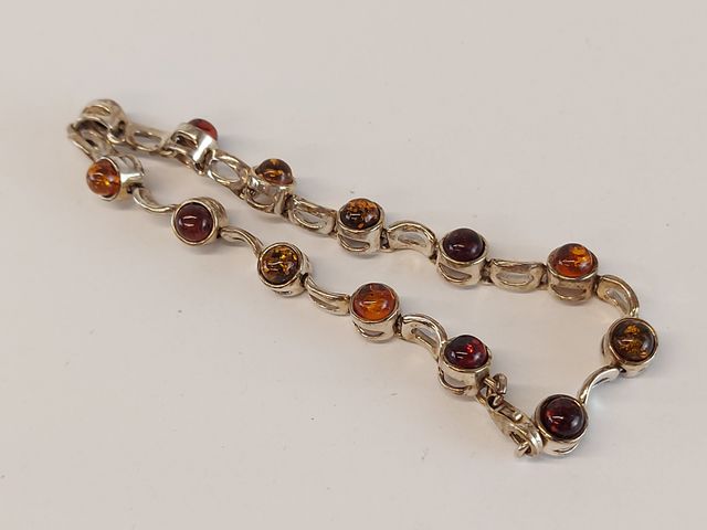 Lot # 45 - Deux bracelets en argent serties de divers types d'ambres - le plus grand mesurant 7.5 pouces de longueur SOLD