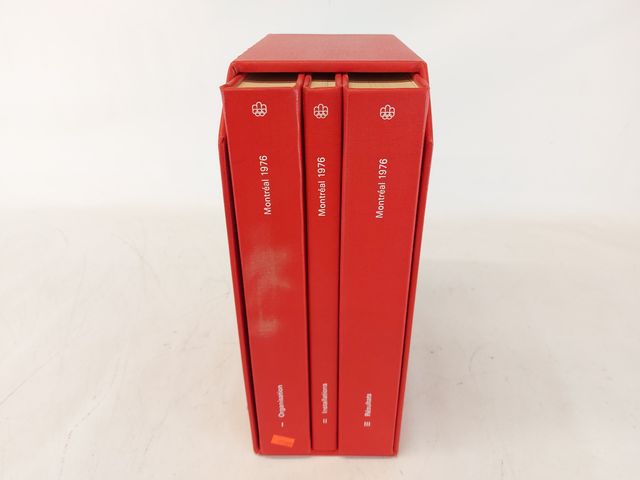 Lot # 19 - Lot jeux olympiques de Montréal de 1976 comprenant deux ensembles de coupes en métal argenté dans leur coffret ainsi que des épinglettes et des livres dont un hors tirage dédicacé par un des membres du comité olympique SOLD