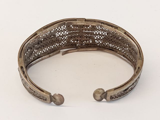 Lot # 175 - Ancien bracelet vietnamien en argent à motifs de dragon mesurant 2.75 pouces de largeur - tel quel SOLD