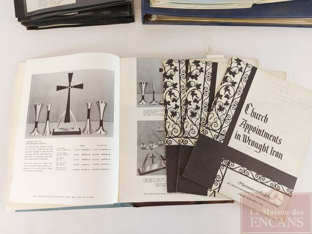 Lot # 71 - Gros lot de documents sur les objets religieux et les commandes passés aux fabriques de pièces religieuses - catalogues - livre de Francois Ranvoyzé Orfèvre - etc. VENDU