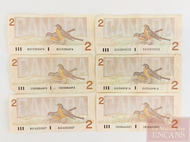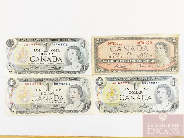 Lot # 123 - Gros lot de billets de banques canadiens - dont 3x1$ 1973 - 1x1$ 1954 - 4x1$ 1967 - 1x2$ 1954 - 6x2$ 1986 SOLD