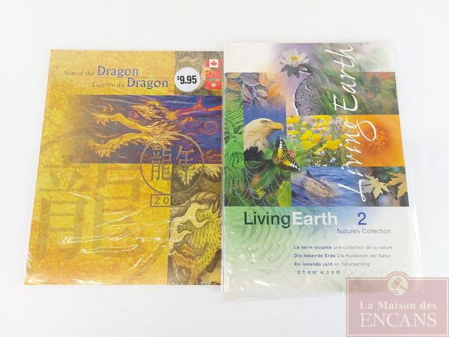 Lot # 65 - Lot philatélique - album de timbres oblitérés internationaux - Année du Dragon et Terre Vivante - et collection de timbres du canada 1997 - et cartes timbrés de la LNH SOLD