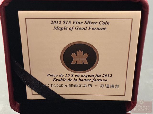 Lot # 296 - Pièce de $15 2012 plus d’une once d’Argent pur ‘Érable de la bonne fortune’ PAS DE TAXE