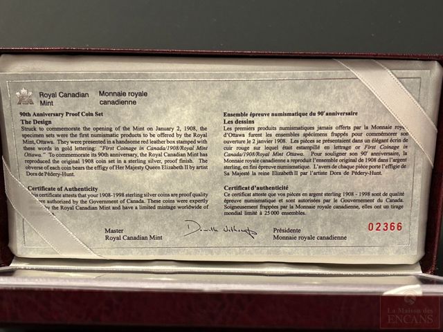 Lot # 232 - Ensemble de Pièces 1908-1998 en Argent fini brillant