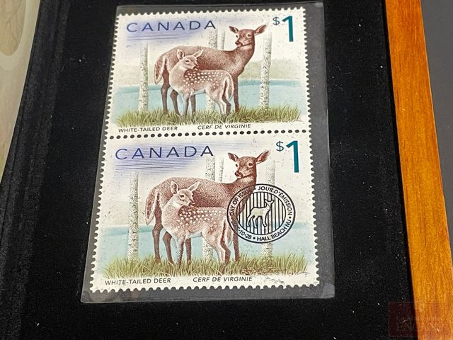 Lot # 34 - Ensemble cerf de virginie timbres et piece sans taxes
