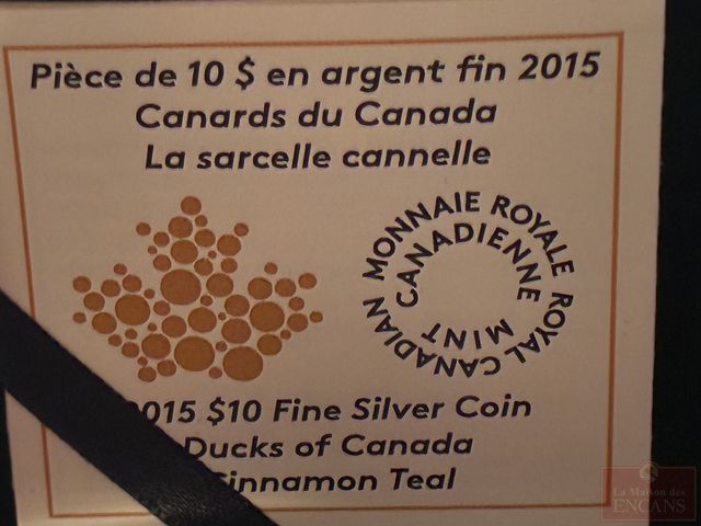 Lot # 317 - Pièce de $10 2015 en Argent pur ‘La sarcelle cannelle’ PAS DE TAXE